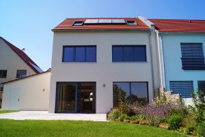 Eine Doppelhaushälfte, die es in sich hat, präsentiert sich eingangsseitig zunächst recht überschaubar. Innen eröffnet sich jedoch ein wahres Raumwunder über 3 Etagen plus Keller. Alle Aufenthaltsräume sind nach Süden und zu der herrlichen Aussicht orientiert. An Helligkeit und Offenheit fehlt es der Haushälfte überhaupt nicht. Durch die sinnvolle Anordnung der Räume fällt kaum auf, dass die Haustrennwand fensterlos bleiben musste.